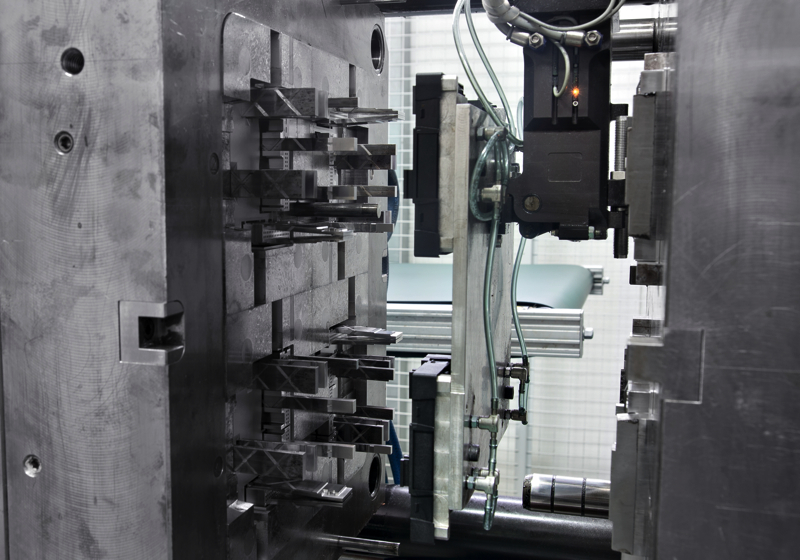 Wir freuen uns Ihnen unsere neue Arburg-Spritzgießmaschine bei der Produktion eines komplexen Bauteils für die Automobilindustrie zu präsentieren. Sie sehen hier einen verkettenen Prozess, mit automatischer Entnahme durch einen 6-Achs-Roboter, welcher das Bauteil im Anschluss vor eine Kamera fährt, um die Einhaltung der SPC-Maße zu überwachen. Sind diese korrekt, wird das Bauteil umgehend mit einer fortlaufenden Teilenummer zu Rückverfolgbarkeit mit einem Trumpf-Laser graviert und erhält einen individuellen Data-Matrix-Code. Die Qualität der Laser-Gravur wird direkt durch einen Verifier überprüft. Anschließend legt der Roboter das Bauteil auf das Förderband und es wird dann mit ESD-Handschuhen und nach einer Sichtkontrolle in vorgefertigte Kunststoff-Trays verpackt. Im zweiten Teil des Videos sieht man unsere optisch-taktile Zeiss O-Inspect Messmaschine bei der automatischen Vollvermesssung des Bauteils, wodurch unserem Qualitätsmanagement ermöglicht wird, präzise Messberichte mit unseren Kunden zu teilen und statistische Auswertungen vorzunehmen.